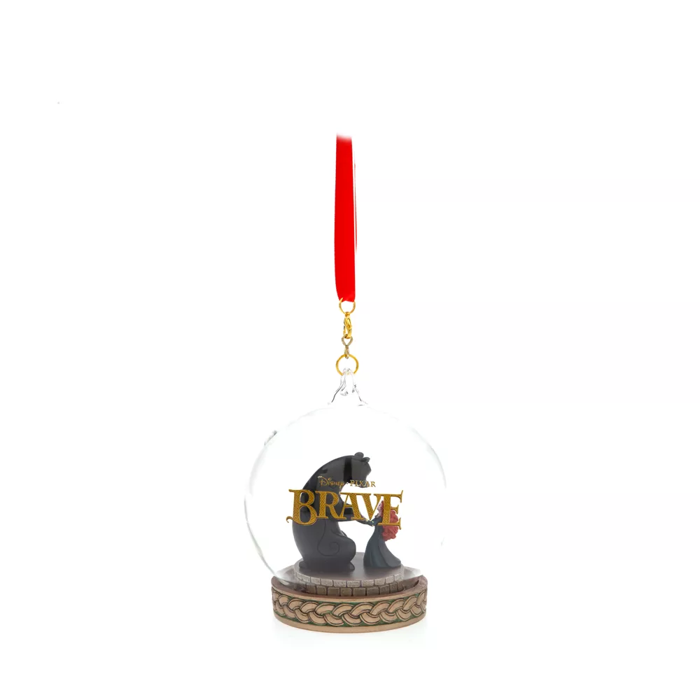 Suivez les feux follets. Ils vous conduiront jusqu’à cette ravissante décoration sculptée à l’effigie de Rebelle et Mor’du ! Elle immortalise les deux personnages dans une boule en verre garnie de l’inscription dorée « Disney, Pixar Brave ».