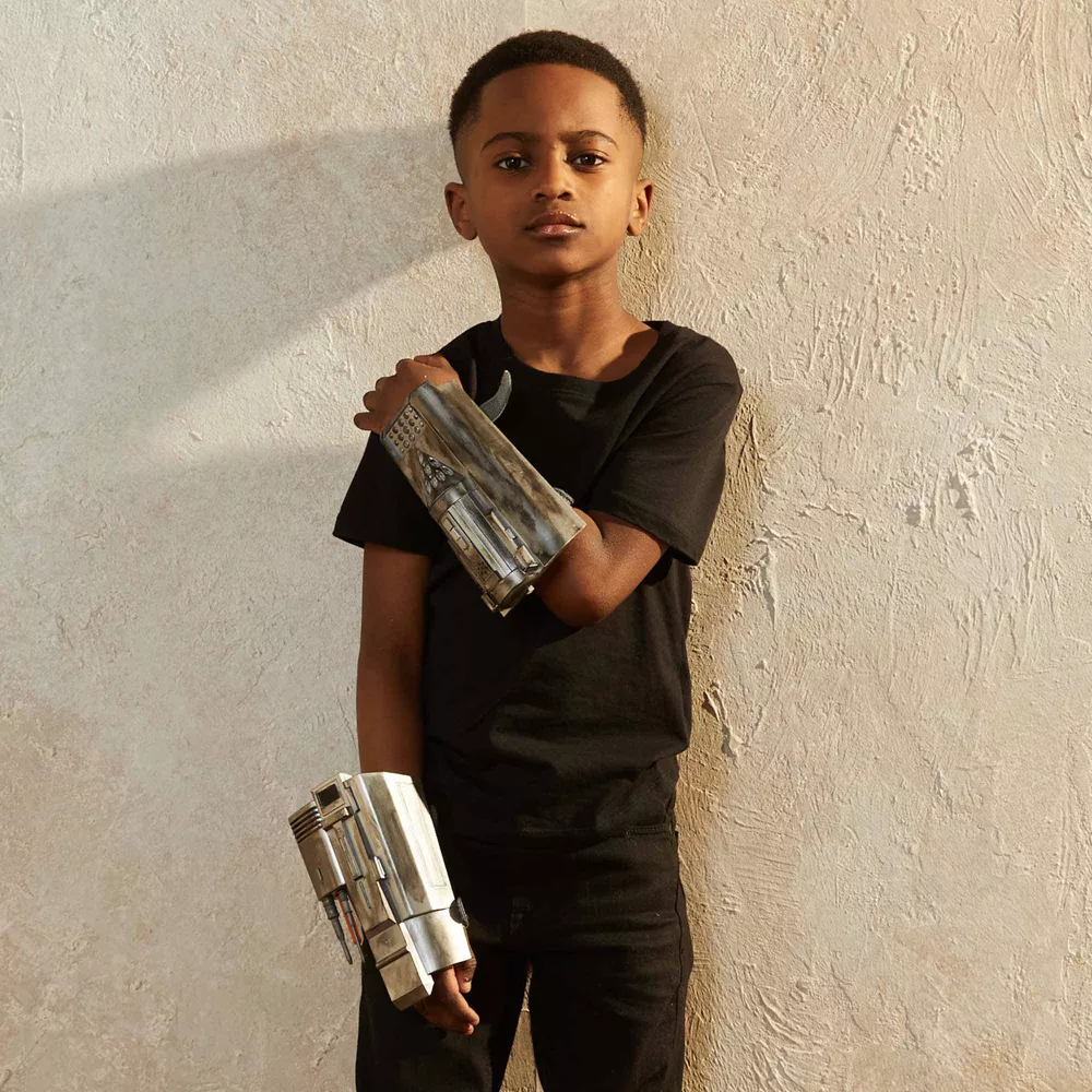 Le combat contre le côté obscur ne connait pas de repos. Prenez les choses en main avec ce duo de gantelets ! Ces modèles permettent de tirer des projectiles en plastique avec le premier et d’envoyer des rayons lumineux avec le second. Facile à enfiler grâce aux pattes de fermeture auto-adhésives, ce produit a été conçu pour avoir une apparence usée semblable aux gantelets du Mandalorien. La victoire est à portée de main !