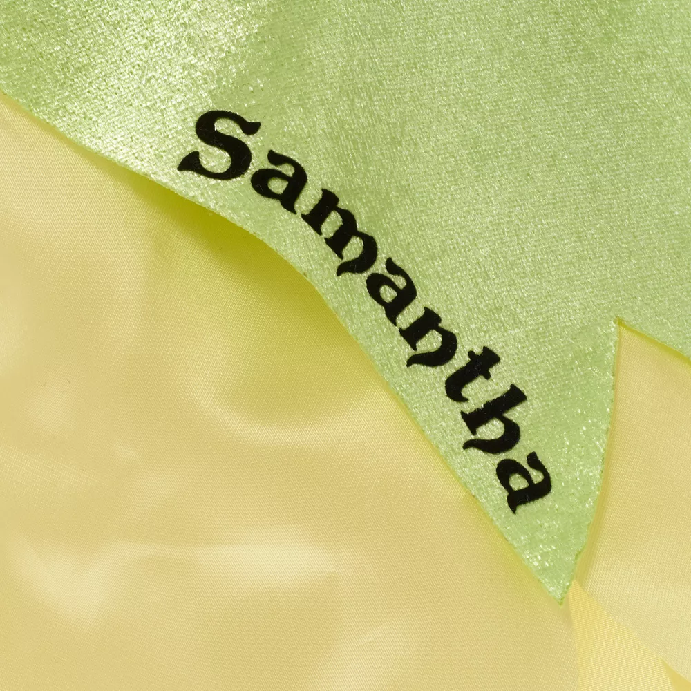 - Robe ornée d’une sur-jupe en velours en forme de pétales