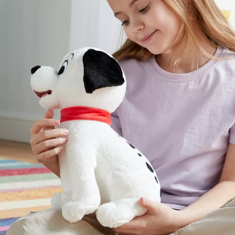 Laissez-vous séduire par notre douce et câline peluche Lucky ! Criant de vérité, l’adorable chiot des 101 Dalmatiens arbore des taches sur sa robe en peluche et porte un collier en tissu rouge.